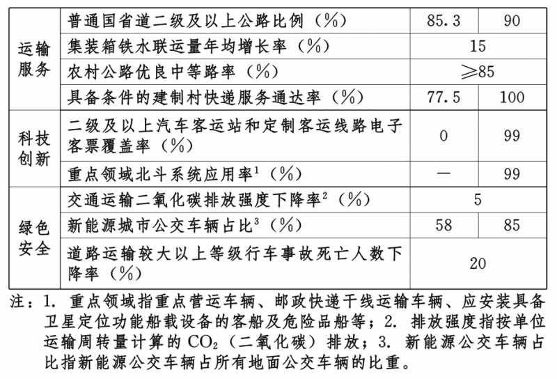 綠色安全成效向全國前列進位。運輸結(jié)構(gòu)持續(xù)優(yōu)化,鐵路、水運貨運量在全社會貨運中的占比明顯提升;交通運輸領(lǐng)域綠色生產(chǎn)生活方式逐步形成,資源要素節(jié)約集約利用水平持續(xù)提高,碳排放強度下降率達(dá)到5%。交通運輸安全發(fā)展的防、管、控能力明顯提高,安全保障體系不斷完善,安全生產(chǎn)事故發(fā)生率進一步降低。