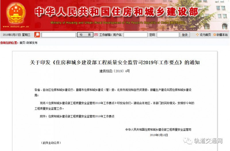 近日,住建部工程質(zhì)量安全監(jiān)管司印發(fā) 2019 年工作要點。