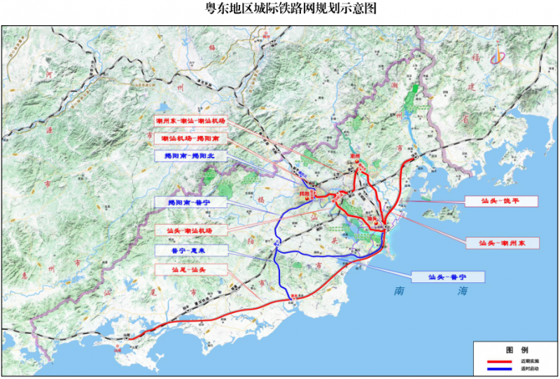 其中,近期規(guī)劃建設(shè)“一線一環(huán)一射線”,即汕尾-汕頭-饒平、汕頭-潮州東-潮汕-潮汕機(jī)場-汕頭、潮汕機(jī)場-揭陽南城際鐵路,總里程320公里,總投資約691.9億元。其余線路待條件成熟后再適時(shí)啟動(dòng)前期工作。