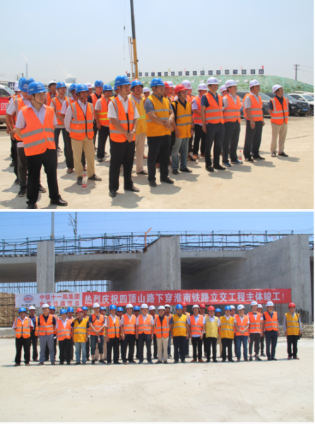 仲夏之際,地方政府、建設(shè)、設(shè)計(jì)、監(jiān)理、施工等單位相關(guān)領(lǐng)導(dǎo)齊聚四頂山路施工現(xiàn)場(chǎng),舉行簡(jiǎn)易現(xiàn)場(chǎng)會(huì),共同慶祝四頂山路下穿淮南線立交工程主體竣工,并對(duì)前一階段的施工進(jìn)行總結(jié),對(duì)后續(xù)工作進(jìn)行了安排與部署。