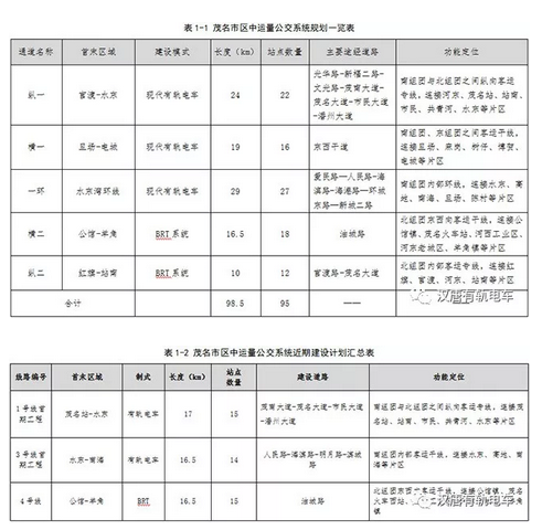 《規(guī)劃》內(nèi)容顯示:以《茂名市城市總體規(guī)劃(2011-2035年)》(報(bào)批稿)為指導(dǎo),根據(jù)茂名市區(qū)城市空間形態(tài)和公交客流走廊形態(tài)分析,結(jié)合軌道交通站點(diǎn)和客運(yùn)樞紐布局等,提出中運(yùn)量公交系統(tǒng)規(guī)劃方案調(diào)整建議。近中期茂名市區(qū)基本建成“兩縱兩橫一環(huán)”的中運(yùn)量公交系統(tǒng),共5條線路,里程98.5公里,實(shí)現(xiàn)網(wǎng)絡(luò)化運(yùn)營(yíng)。