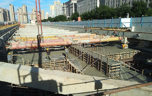 東二環(huán)路站位于成吉思汗東街與北二環(huán)交叉路口西側(cè)200米,沿成吉思汗東街布置,車站主體總長193米,標(biāo)準(zhǔn)段寬度19.7米,為地下兩層11米島式站臺,地下一層為站廳層,地下二層為站臺層。車站共設(shè)3個出入口2組風(fēng)亭。車站大、小里程端均設(shè)盾構(gòu)接收井,采用明挖順作法施工,共分兩期施工,一期施工車站主體結(jié)構(gòu),二期施工車站附屬結(jié)構(gòu)。