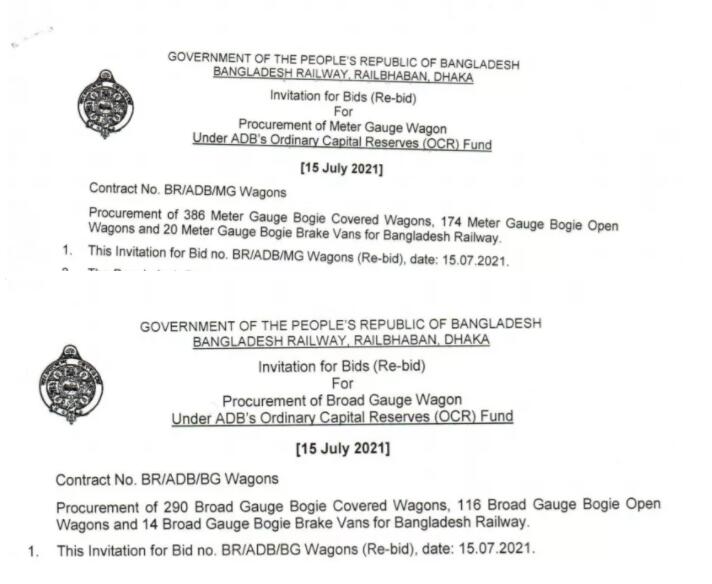 近日,孟加拉國鐵道部發(fā)布兩項鐵路貨車招標采購項目,分別為420輛寬軌貨車和580輛米軌貨車,招標截止日期分別為2021年8月29日與2021年8月26日。