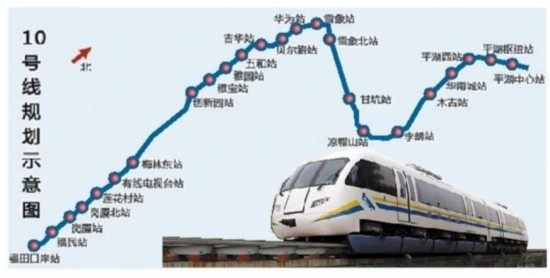 地鐵10號線起自福田口岸,終點(diǎn)為平湖中心,途經(jīng)平湖、坂田坂雪崗、華為新城、梅林關(guān),覆蓋了深圳整個中部發(fā)展軸。線路全長29.54公里,經(jīng)福田、龍華、龍崗三大區(qū)域,共設(shè)車站24個,其中換乘站8座。