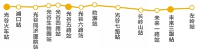 該線路整體設(shè)計(jì)為云鶴黃色,線路全長19.7公里,全線車站共13座,其中光谷火車站、光谷五路站、未來三路站為換乘站,可換乘2號(hào)線南延線及遠(yuǎn)期規(guī)劃中的9號(hào)線、19號(hào)線,光谷火車站、光谷五路站、光谷七路站為該線特色站。