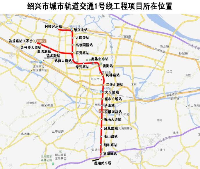 紹興市城市軌道交通1號線工程由主線和支線組成,全長31.3公里。主線起點(diǎn)為笛揚(yáng)路站(不含),與杭紹城際線貫通運(yùn)營,終點(diǎn)為鑒湖鎮(zhèn)站,依次沿群賢路、站前大道、體育路、解放路敷設(shè),線路長 24.2公里,全為地下線;設(shè)車站18座,平均站間距1.38公里;1號線支線起點(diǎn)為柯橋客運(yùn)站,終點(diǎn)為站前大道站,依次沿綢緞路和站前大道敷設(shè),線路長 7.1公里,全為地下線,設(shè)車站6座,平均站間距1.26公里。