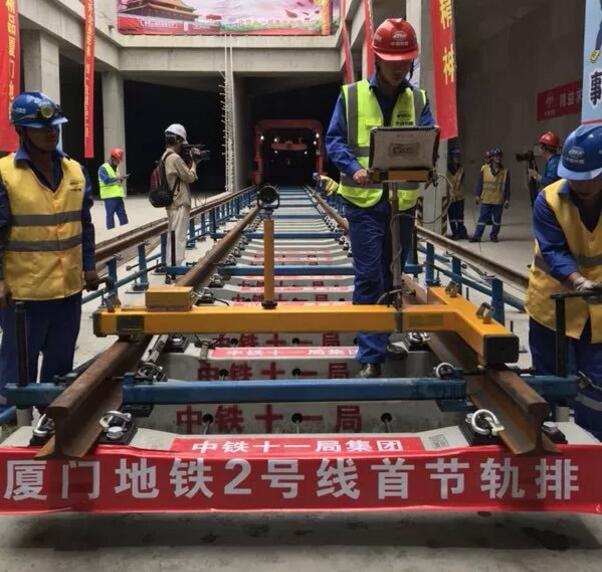 2018年5月4日上午10時(shí),廈門地鐵2號(hào)線嶺兜鋪軌基地,鋪軌龍門吊將首節(jié)軌排起吊至軌排井口,軌道施工人員將軌排放至鋪設(shè)區(qū)段,首節(jié)軌排鋪設(shè)完成。地鐵2號(hào)線正式拉開鋪軌施工序幕!