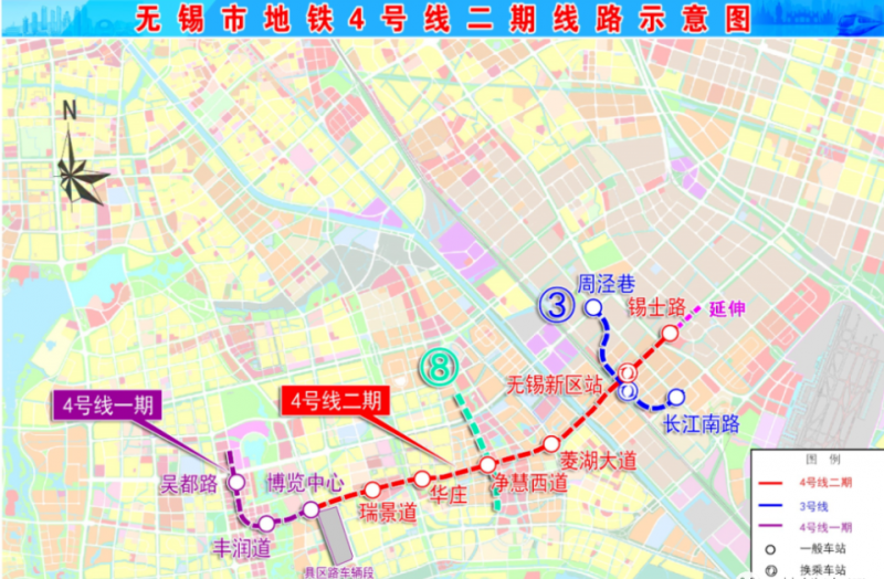 無錫地鐵4號線二期工程起自4號線一期工程博覽中心站,沿震澤路、新華路敷設(shè),止于錫士路站并預留延伸條件,路線全長約8.6公里。全線共設(shè)置車站6座,均為地下站。項目投資估算為64.12億元,建設(shè)工期預計為48個月。