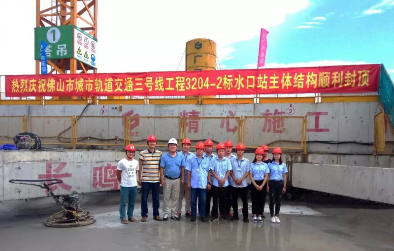 7月31日上午,隨著第三倉頂板最后一車混凝土澆筑完成,佛山地鐵三號線工程3204-2標(biāo)水口站主體結(jié)構(gòu)順利完成封頂,這也是佛山地鐵三號線工程自美旗站之后的第二座主體結(jié)構(gòu)完成封頂?shù)能囌尽?