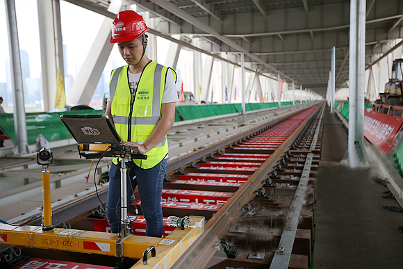 短軌鋪設并不簡單。該負責人告訴記者,因朝天門長江大橋為鋼桁梁結構,軌道對線型精度要求高。為使軌枕與梁體結構完全契合,確保軌道的平穩(wěn)順暢,經(jīng)反復論證后,軌道環(huán)線朝天門長江大橋最后確定采用合成樹脂軌枕加工及安裝工藝。