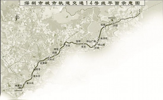 深圳地鐵14號線全長約50.34公里,共設(shè)站17座、停車場1座、車輛段1座、主變電所4座,采用自動化無人駕駛,最高設(shè)計速度為120公里/小時,預(yù)計2022年竣工。14號線連接福田中心區(qū)、布吉、橫崗、大運(yùn)新城、坪山中心、坑梓,支撐整個東部發(fā)展軸。