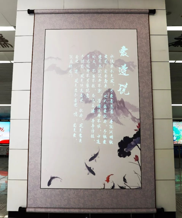 站臺(tái)層的設(shè)計(jì)充分考慮到客流因素,利用立柱和墻面將中華傳統(tǒng)美德通過經(jīng)典小故事進(jìn)行展示,讓乘客品味著廉潔文化。廉潔文化主題墻,則將廉潔文化與地鐵原素有機(jī)融合,寓意地鐵集團(tuán)創(chuàng)建“廉潔地鐵”的決心。除此之外,在車站的電扶梯、衛(wèi)生間、垃圾桶、座椅下方等位置都貼有廉潔文化標(biāo)語,置身車站的每個(gè)角落,都能感受到濃厚的廉潔文化氛圍,乘客們也都紛紛駐足拍照。