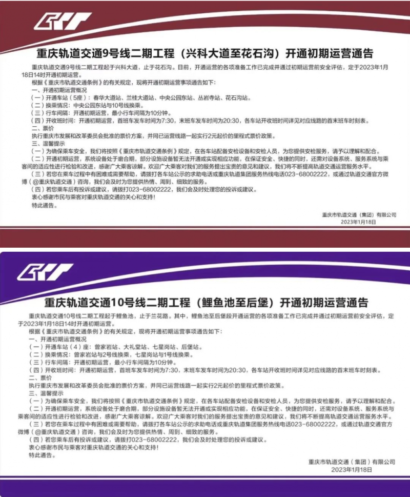 1月18日14時(shí),由重慶軌道集團(tuán)建設(shè)的地鐵9號(hào)線二期、10號(hào)線二期鯉魚(yú)池至后堡段開(kāi)通初期運(yùn)營(yíng),在廣大市民的殷切期盼中正式開(kāi)門(mén)迎客。