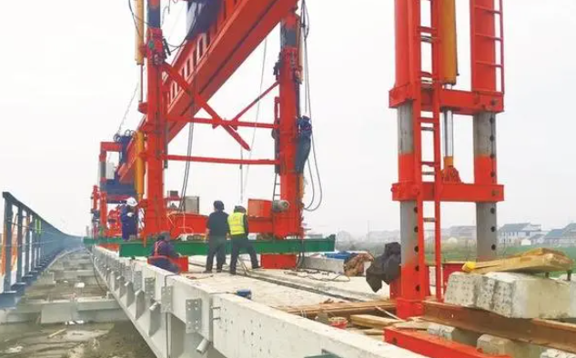 2月17日,隨著DJ180架橋機(jī)將最后一片32米預(yù)制T梁精準(zhǔn)落到0#橋墩上,洋呂鐵路通呂運(yùn)河特大橋順利貫通。至此,中鐵四局洋呂鐵路工程1標(biāo)項(xiàng)目部主線T梁架設(shè)任務(wù)全部完成。洋呂鐵路是江蘇省第一條百億級的地方鐵路,也是省、市重點(diǎn)工程。