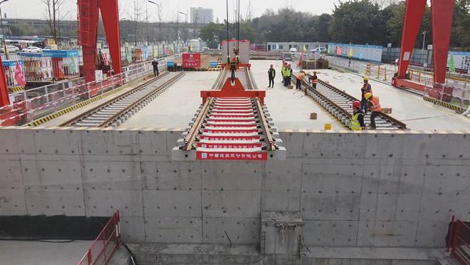 3月4日,成都地鐵27號線一期工程一組軌排在王賈橋站吊裝鋪設(shè),標(biāo)志著成都地鐵27號線一期工程地下段全面進(jìn)入鋪軌階段。