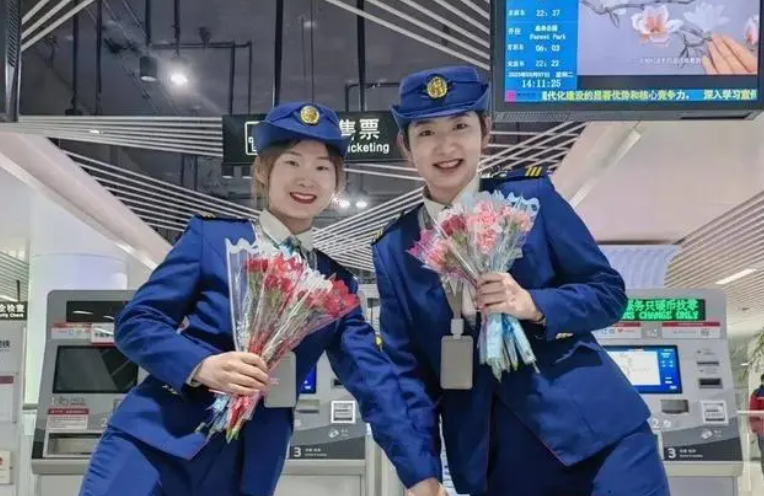 “三八”國際婦女節(jié),常州地鐵為乘坐常州地鐵的市民們帶來了定制列車語音播報(bào),“常州地鐵祝福各位女神前路繁花似錦未來幸福抵達(dá)”。早高峰期間,地鐵人還在青楓公園、延政大道、文化宮、市民廣場、河海、聚湖路、南大街、紫云這8個(gè)車站,為每一位美麗的她送上一朵康乃馨。