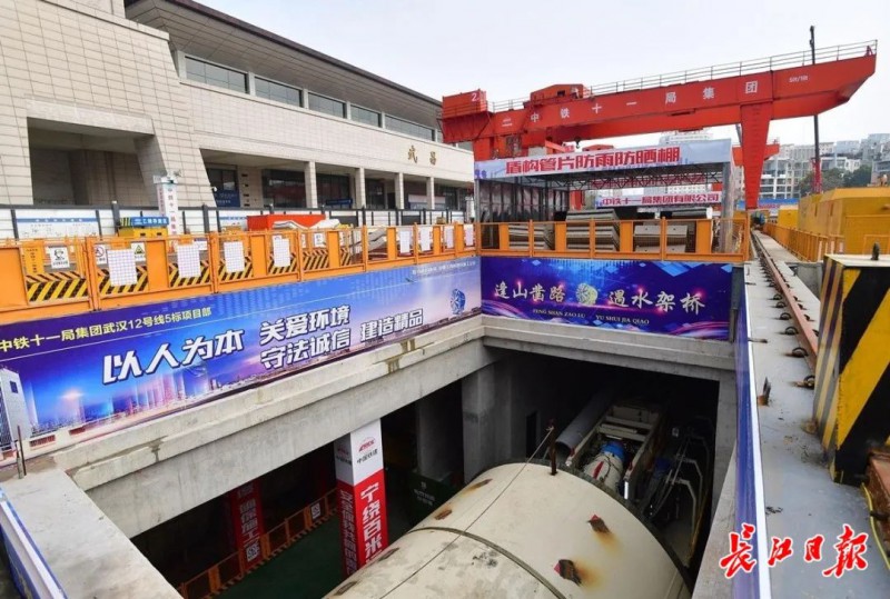 地鐵隧道開挖深度大部分在地下20米左右,像這樣位于地下5米的隧道,比較少見,施工難度也比較大。武漢地鐵股份公司二級項(xiàng)目經(jīng)理石徑介紹,武中區(qū)間右線全長1839.3米,比一般區(qū)間隧道長,累計(jì)穿越61處建(構(gòu))筑物及主要管線,包括雄楚大道地下通道、雄楚大道高架橋墩、鐵路路基、密集建筑群等。“它還有一個最大特點(diǎn)就是淺,始發(fā)端隧道頂部覆土僅5.06米?!笔瘡秸f,大多數(shù)盾構(gòu)隧道,施工人員要沿著旋轉(zhuǎn)梯籠下至20米深基坑底部,交流要靠通信工具,但在武中區(qū)間盾構(gòu)始發(fā)井,施工人員站在地面可以和基坑人員直接對話。