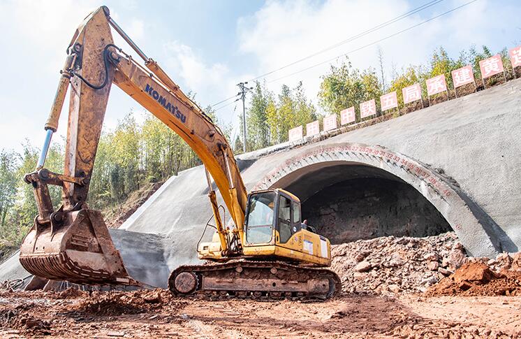 3月30日,在成渝中線高鐵首座隧道—黃連堡隧道施工現(xiàn)場,工程機械在進行現(xiàn)場作業(yè)。