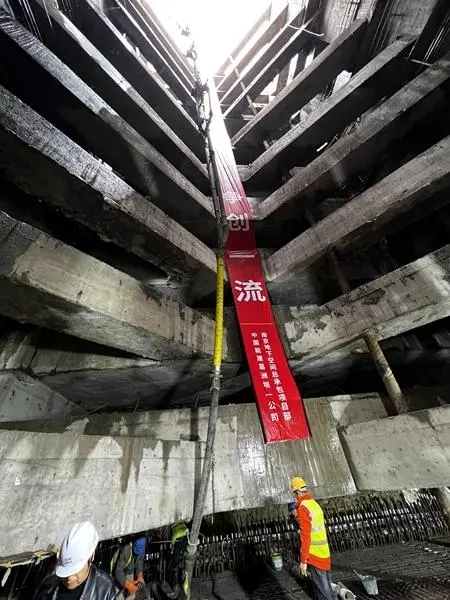 記者了解到,這塊面積為600平方米底板,澆筑厚度2.6米,最厚處達(dá)3.6米,需要連續(xù)澆筑混凝土2000立方米。據(jù)中國能建葛洲壩一公司南京地下空間總承包項(xiàng)目部副經(jīng)理崔雨軒介紹,從今年3月中旬開始作業(yè),原本一個月的工期在項(xiàng)目部的努力下,提前保質(zhì)保量完成了工期?!暗叵伦鳂I(yè)十分辛苦,工人們都下來工作都像過‘梅花樁’,50.8米的深度是南京最深的地鐵,每天一趟趟真不容易?!贝抻贶幐嬖V記者,底板為地下空間第六層,也是地鐵濱江站所在位置。盾構(gòu)井的澆筑完成為4號線的貫通和江南江北雙主城的連接奠定了基礎(chǔ)。