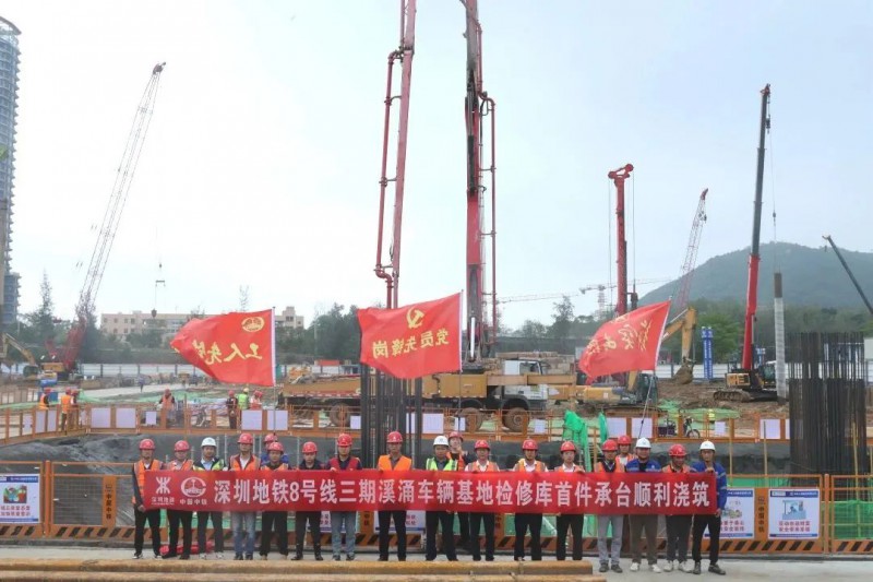近日,地鐵8號(hào)線三期溪涌車輛基地檢修庫(kù)首座承臺(tái)順利澆筑。