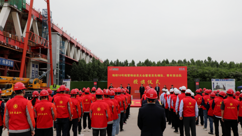 為扎實開展學(xué)習(xí)貫徹習(xí)近平新時代中國特色社會主義思想主題教育,對標(biāo)省委省政府“三個年”決策部署和西安市“北跨”戰(zhàn)略,扎實推進地鐵10號線項目建設(shè),5月5日下午,市軌道集團在渭河公軌合建橋北岸頂推平臺舉行了地鐵10號線誓師動員大會暨黨員先鋒隊、青年突擊隊授旗儀式。團市委、市軌道集團、陜建集團股份公司相關(guān)領(lǐng)導(dǎo)出席啟動儀式,來自市軌道集團及參建單位的三支黨員先鋒隊、三支青年突擊隊共計100名黨員、青年代表參加儀式。