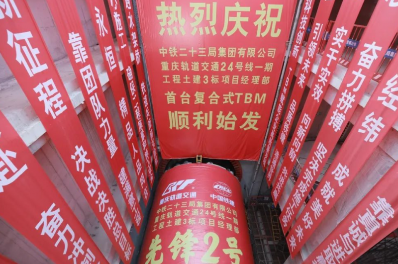 5月24日,重慶地鐵24號線一期瓦子壩站~茶涪路站區(qū)間(以下簡稱“瓦茶區(qū)間”)復(fù)合式TBM“先鋒2號”順利始發(fā)。至此,全線全面進入雙線掘進施工階段,為工程建設(shè)按下“快進鍵”。