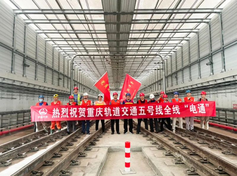 2023年6月1日,重慶地鐵5號線大石壩~石橋鋪段接觸網(wǎng)送電成功,標(biāo)志該段順利實現(xiàn)“電通”。