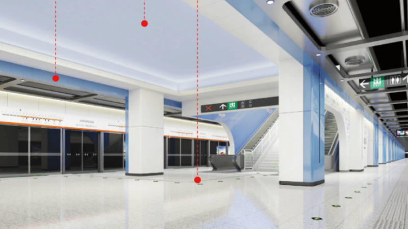 在裝修設(shè)計(jì)上,車站選擇極具“未來科技感”的藍(lán)色、白色作為主色調(diào)。白色在未來科技中代表未知與包容,預(yù)示了未來科技與傳統(tǒng)文化的交融;藍(lán)色則給人廣闊、無限聯(lián)想的視覺感受,寄予了人類對(duì)于未來科技的向往。通過主色調(diào)的明度、純度對(duì)比控制視覺刺激,讓市民共同見證未來科學(xué)城前進(jìn)的步伐與未來發(fā)展的規(guī)劃。