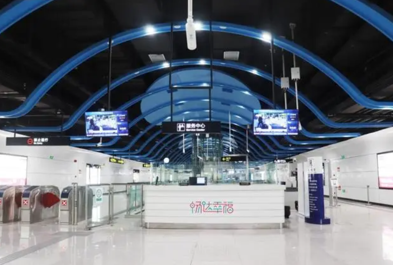 海信橋站站內空間秉持“簡化車站內部裝飾風格,體現(xiàn)工業(yè)藝術化”的設計思路,線面結合,呈現(xiàn)出流暢的空間布局。海信橋站內部裝飾將海洋藍與鏤空線條巧妙結合,向人們展現(xiàn)著這座沿海城市的獨有浪漫。