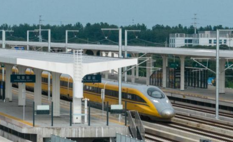 7月3日,試驗列車通過滬寧沿江高鐵句容站(無人機照片)。