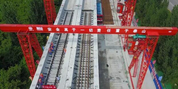 2017年8月20日,在R1線始發(fā)站池東鋪軌基地,中鐵一局鋪軌工人操作著兩臺龍門架,將一節(jié)25米軌排順利鋪裝到高架橋面線路上,標(biāo)志著濟南首條軌道交通正式進(jìn)入鋪軌階段。