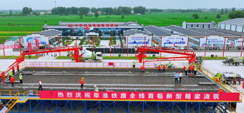 7月18日上午,在安徽省淮北市濉溪縣中鐵四局雙堆集制梁場,阜陽至宿州(淮北)鐵路(簡稱:阜淮鐵路)全線首榀新型箱梁順利完成澆筑,為阜淮鐵路橋梁架設(shè)及軌道施工奠定了堅(jiān)實(shí)基礎(chǔ)。