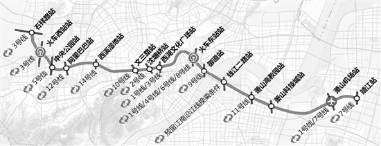 機場軌道快線上報的方案中設置了15個站點,起點石祥路站,終點靖江站,一路從城西穿越市中心,再到蕭山機場。這條機場軌道快線有那么多換乘站,與現(xiàn)有、即將開通的每一條線路都有換乘點。
