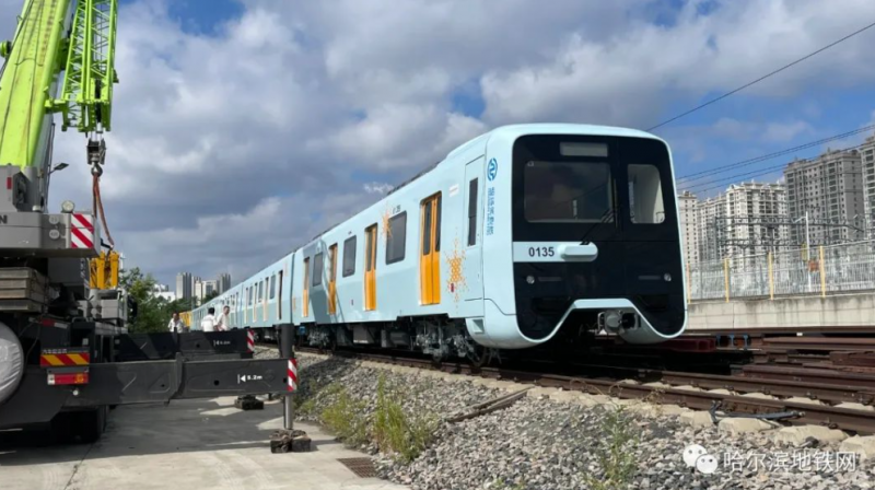 2023年8月22日上午,從中車長春軌道客車股份有限公司出發(fā)的哈爾濱地鐵1號線列車(0135車)在工作人員的調(diào)度下,通過吊裝放置在哈爾濱太平橋車輛基地內(nèi)部軌道上。