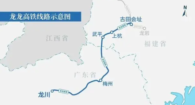 龍龍高鐵東起龍巖市,途經(jīng)上杭縣、武平縣進(jìn)入廣東省境內(nèi),終到河源市龍川縣,線路全長265.5公里,其中龍武段全長92.693公里,利用既有贛瑞龍鐵路28.357公里,新建線路全長64.336公里。福建境內(nèi)設(shè)龍巖、古田會址、上杭、武平共4座車站,其中龍巖站為既有車站,古田會址站為既有車站改擴(kuò)建,上杭站、武平站為新建車站,總投資85.6億元,設(shè)計時速250km/h。目前龍龍高鐵龍武段基本建設(shè)完成,正在進(jìn)行全線靜態(tài)驗(yàn)收,預(yù)計8月底完成,9月開始全線聯(lián)調(diào)聯(lián)試。