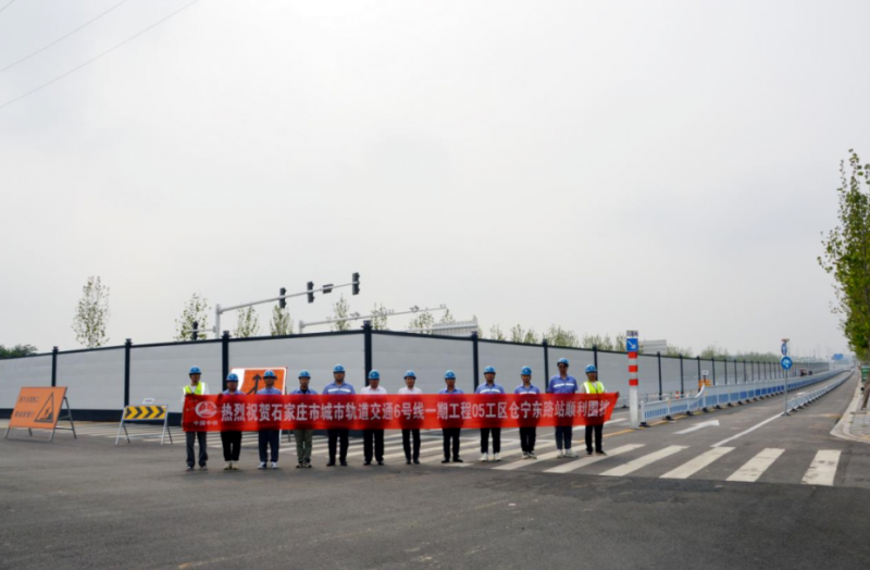 近日,石家莊地鐵6號線一期工程倉寧東路站一期圍擋順利完成。