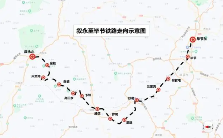 據(jù)記者了解,敘畢鐵路是西部陸海新通道的重要組成部分,線路北起既有納溪至敘永鐵路龍鳳(敘永北)站,全線新建車站13座,途經(jīng)四川省敘永縣、興文縣,云南省昭通市威信縣、鎮(zhèn)雄縣,貴州省畢節(jié)地區(qū),終到既有織金至畢節(jié)鐵路畢節(jié)東站,線路正線全長(zhǎng)約189公里,其中四川段約152公里,貴州段約37公里,設(shè)計(jì)時(shí)速120公里,是國(guó)鐵I級(jí)單線客貨共線電氣化鐵路,全線新建車站11座,既有站3座,分別為敘永北、金桂、興文南、白臘、高田鄉(xiāng)、下坪、威信(既有)、羅坭、果珠、以勒、蘭家溝、何官屯、畢節(jié)(既有)、畢節(jié)東(既有)。