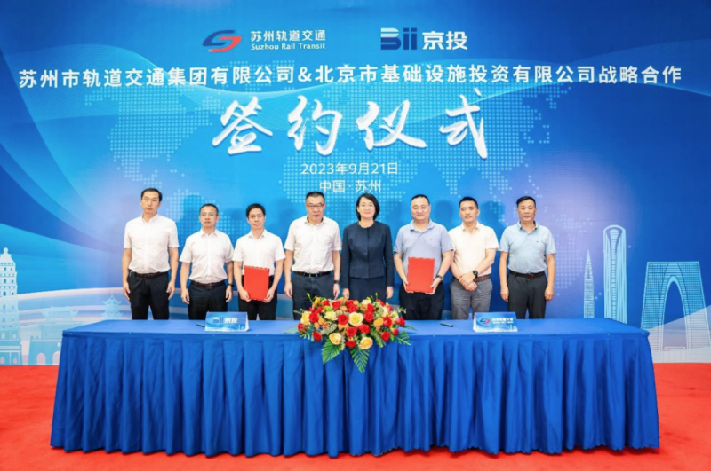9月21日上午,蘇州軌道交通集團(tuán)與北京市基礎(chǔ)設(shè)施投資有限公司(以下簡(jiǎn)稱“京投公司”)簽署了戰(zhàn)略合作協(xié)議。雙方將圍繞智慧城軌、城市軌道交通TOD綜合開發(fā)、產(chǎn)業(yè)鏈投資等領(lǐng)域進(jìn)行深度合作。蘇州軌道交通集團(tuán)黨委委員、副總經(jīng)理朱寧,京投公司董事會(huì)秘書、投資發(fā)展總部總經(jīng)理任宇航分別代表雙方簽署協(xié)議。蘇州軌道交通集團(tuán)黨委書記、董事長(zhǎng)金銘,京投公司黨委書記、董事長(zhǎng)張燕友出席簽約儀式并見證簽約。
