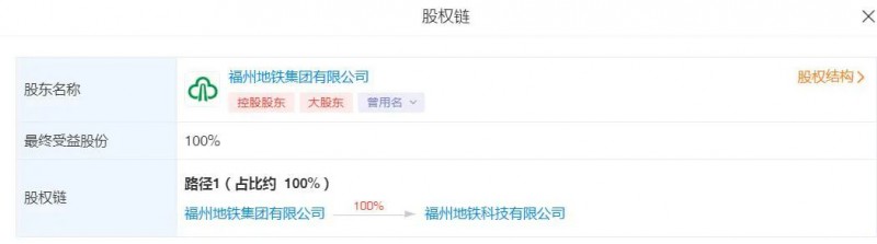 根據(jù)愛企查顯示,該公司由福州地鐵集團有限公司100%持股。