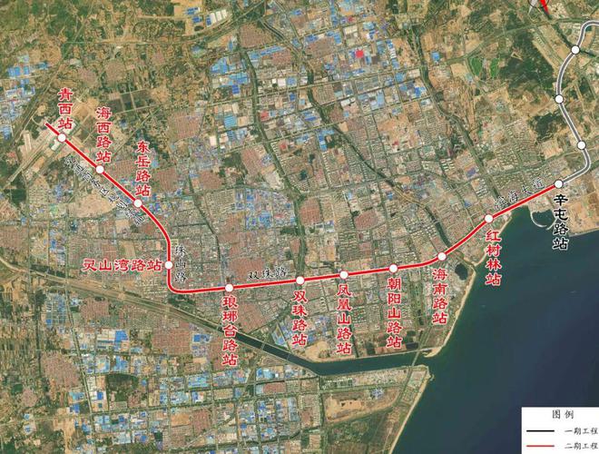 青島地鐵6號(hào)線二期工程西起青西站,東至6號(hào)線二期工程起點(diǎn)站辛屯路站,線路沿青西站商務(wù)區(qū)規(guī)劃綠軸、珠山路、雙珠路及濱海大道敷設(shè)。