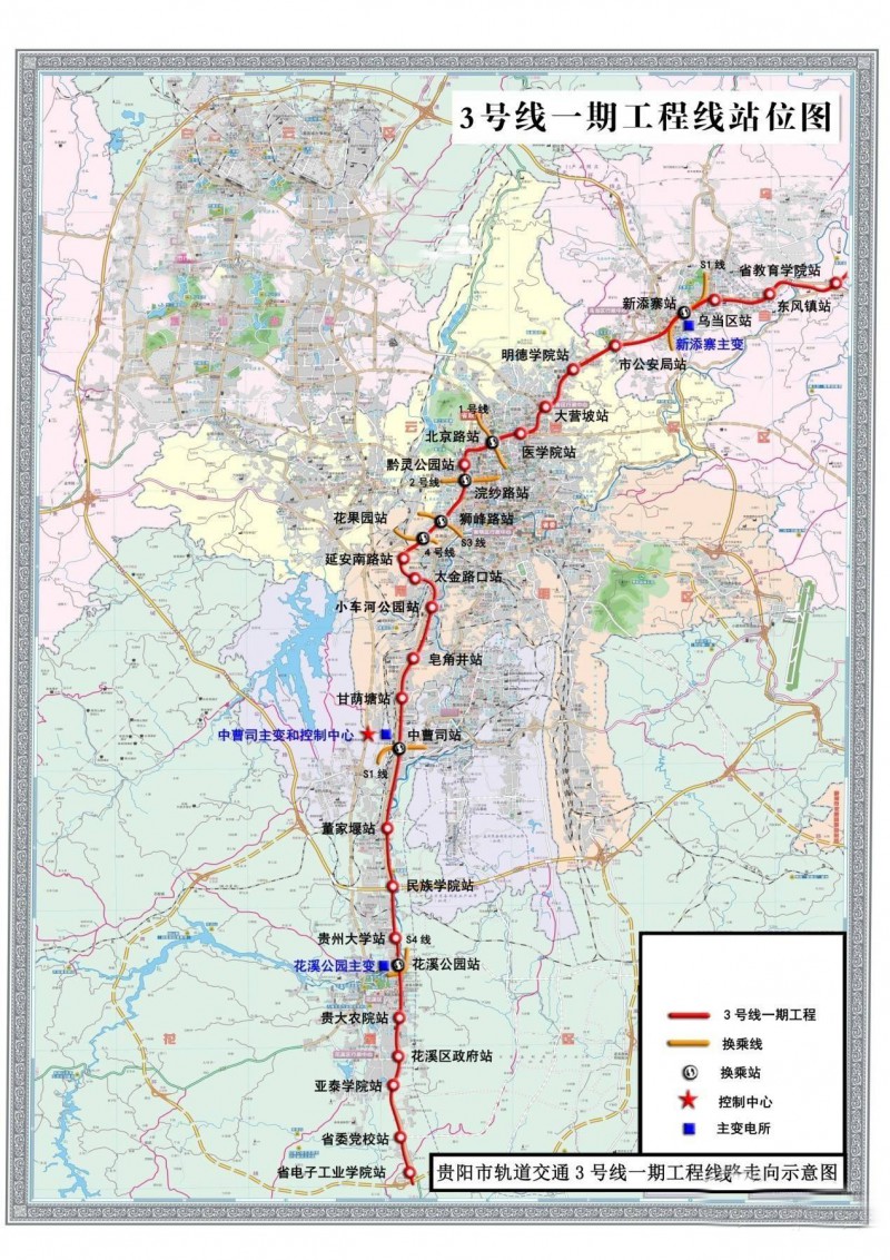 此前,貴陽市城市軌道交通有限公司網(wǎng)發(fā)布有關(guān)地鐵3號線消息顯示,3號線一期全長約43公里,線路起于花溪區(qū)桐木嶺站,止于烏當(dāng)區(qū)洛灣站,共設(shè)車站29座,車輛最高時速100公里/小時。共設(shè)置28個站點(diǎn),所有站點(diǎn)皆為地下站。項(xiàng)目最大站間距為2.997km,最小站間距為0.5公里,其中設(shè)置7個換乘站,分別是與S1號線換乘的新添寨站和中曹司站、與1號線換乘的北京路站、與2號線換乘的浣紗路站、與S3號線換乘的獅峰路站、與4號線換乘的花果園站、與S4號線換乘的花溪公園站。項(xiàng)目設(shè)車輛段和停車場各1座,主變電所3座
