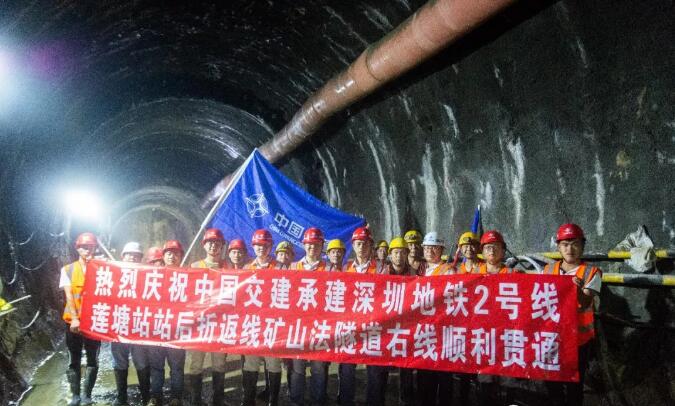 8月28日,經(jīng)過520天的艱苦奮戰(zhàn),深圳地鐵2號線2131標(biāo)段蓮塘站站后折返線礦山法隧道右線初支順利貫通。