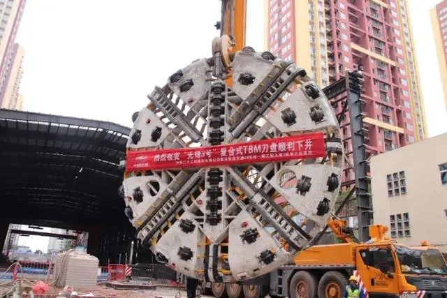 此次始發(fā)的“先鋒3號”復(fù)合式TBM重達(dá)480噸,總長73.62米,刀盤直徑6.88米,自瓦子壩站右線始發(fā)。