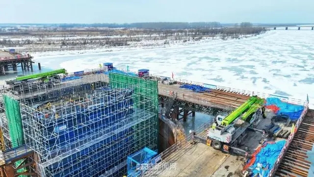 施工單位中鐵上海工程局集團公司采取了搭設水上鋼棧橋、鉆孔平臺、雙壁鋼圍堰基礎圍護、墩身棚架保溫等施工方案。應用超聲波檢孔儀、大直徑反循環(huán)鉆機、鋼護筒串聯(lián)等創(chuàng)新技術,打通了施工過程中的關鍵環(huán)節(jié),保證了工程項目施工有序推進。