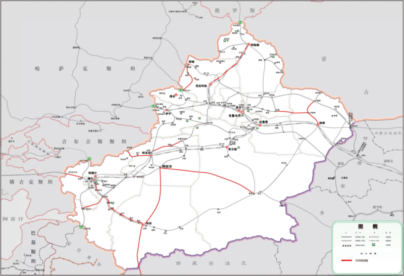 新疆鐵路網(wǎng)規(guī)劃示意圖(2018-2030)