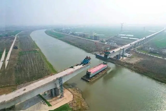 3月15日,隨著跨中50m鋼梁段順利吊裝就位,由長江沿岸鐵路集團(tuán)股份有限公司建設(shè)管理,中鐵上海工程局承建的滬渝蓉高鐵天門漢北河鐵路特大橋無拱承吊索式鋼混連續(xù)梁順利合龍。此梁型在國內(nèi)運(yùn)營時(shí)速350公里高鐵中暫無使用先例,連續(xù)梁的成功合龍為后續(xù)高速鐵路大跨度橋梁的應(yīng)用場景拓展了思路。