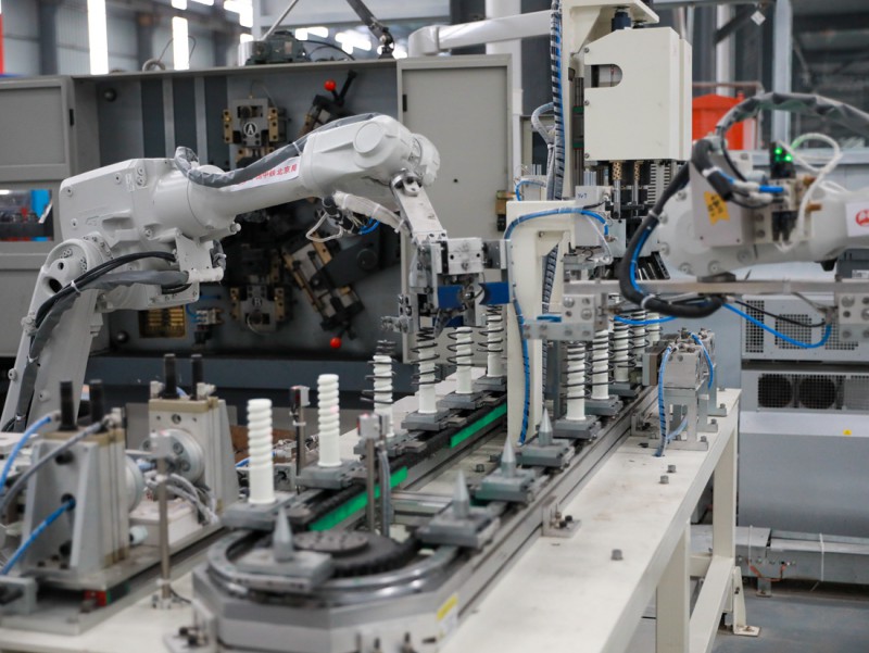 記者在現(xiàn)場(chǎng)看到,近6000多平方米的生產(chǎn)車間里,寬敞明亮,干凈整潔,廠內(nèi)配置有智能布料機(jī)、智能箍筋焊接機(jī)、箍筋桁架智能安裝、打磨除塵設(shè)備、全自動(dòng)脫模設(shè)備、軌枕智能檢測(cè)設(shè)備、軌枕碼垛機(jī)械手等14臺(tái)智能裝備,箍筋、桁架筋、混凝土入模等軌枕生產(chǎn)作業(yè)工序均實(shí)現(xiàn)軌枕生產(chǎn)全過(guò)程的自動(dòng)化、智能化、無(wú)人化生產(chǎn),繪就一幅“有人值守、無(wú)人操作”的智能流水生產(chǎn)畫卷。