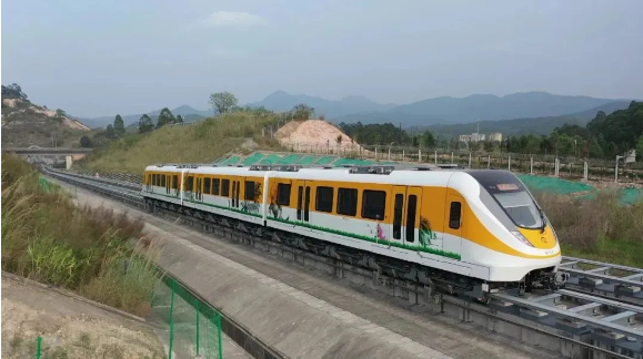 3月29日,由清遠(yuǎn)磁浮交通有限公司運(yùn)營、中國中車設(shè)計(jì)制造的清遠(yuǎn)磁浮列車,在清遠(yuǎn)磁浮旅游專線湖蝶灣-長隆區(qū)間上行線進(jìn)行了達(dá)速試驗(yàn),實(shí)現(xiàn)了132.9km/h的最高運(yùn)行速度。