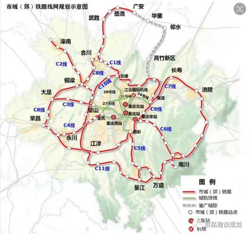 重慶都市圈環(huán)線鐵路(合川至永川段)又稱“市域郊鐵路C8線、西二環(huán)線、鐵路二環(huán)線。