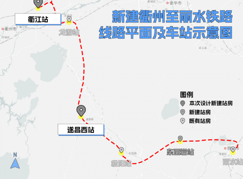 由浙江交通集團投資建設(shè)的衢麗鐵路二期項目全線共設(shè)衢江站、龍游站、遂昌西站、松陽站4座車站,其中衢江站、遂昌西站為新建站。據(jù)了解,衢江站新建到發(fā)線6條(含正線2條),預留正線2條。站房主體長156米、寬45米,最高聚集人數(shù)800人,批復設(shè)計面積為10000平方米,預計遠期年旅客發(fā)送量110萬人/年。
